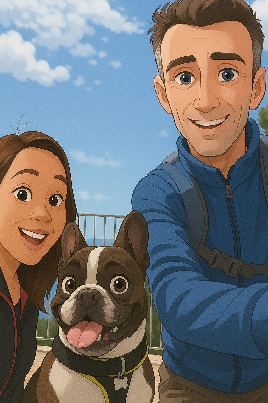 Aujourd’hui, notre vie à quatre – avec Simba, notre bouledogue français, depuis 2021 – est un équilibre joyeux entre nos familles, la scolarité d’Elaia, nos métiers, nos amis, et nos passions : le sport, les marches en pleine nature, les voyages dès que possible, la lecture, le cinéma, la musique, et une quête spirituelle qui nous unit.